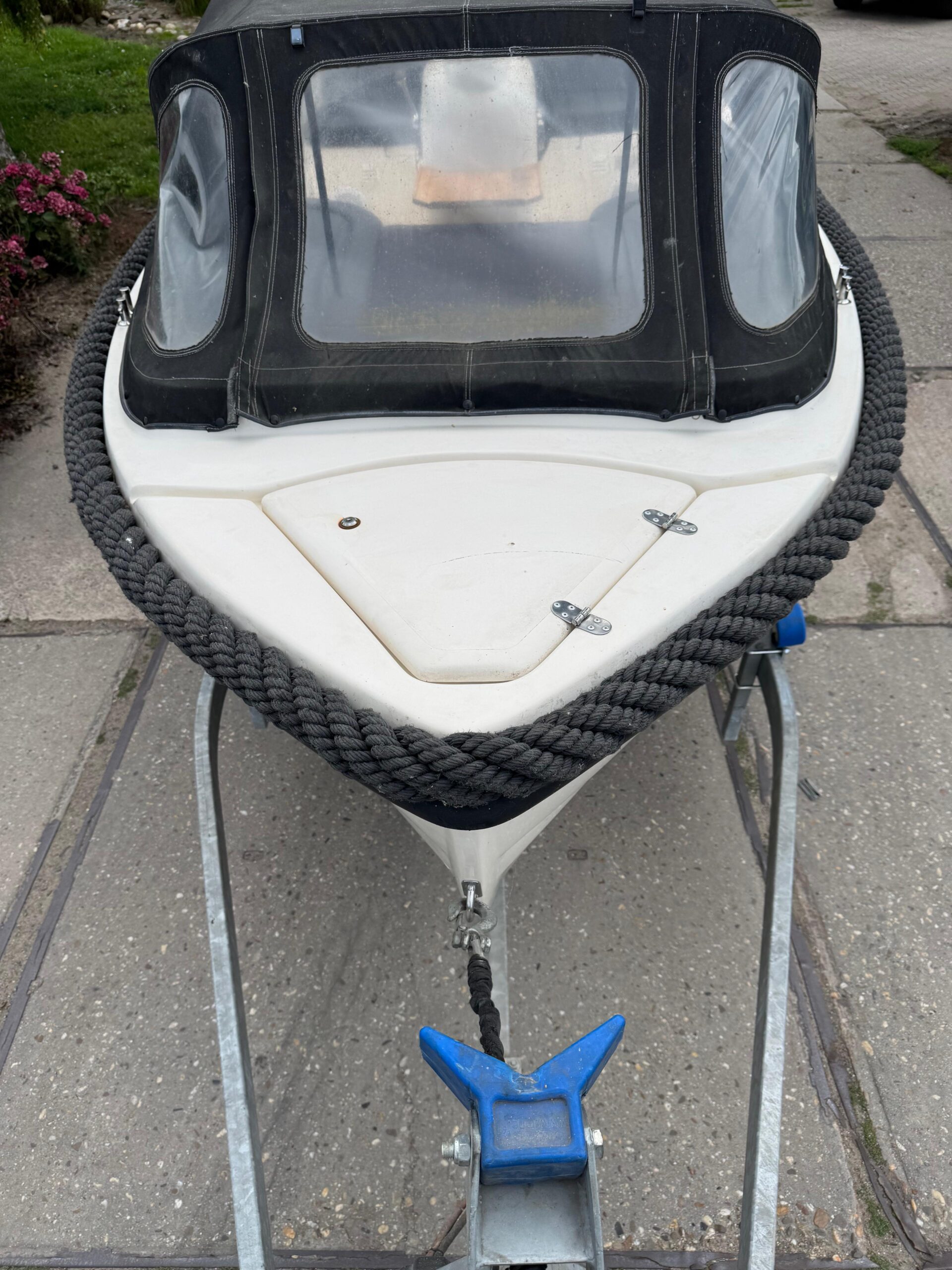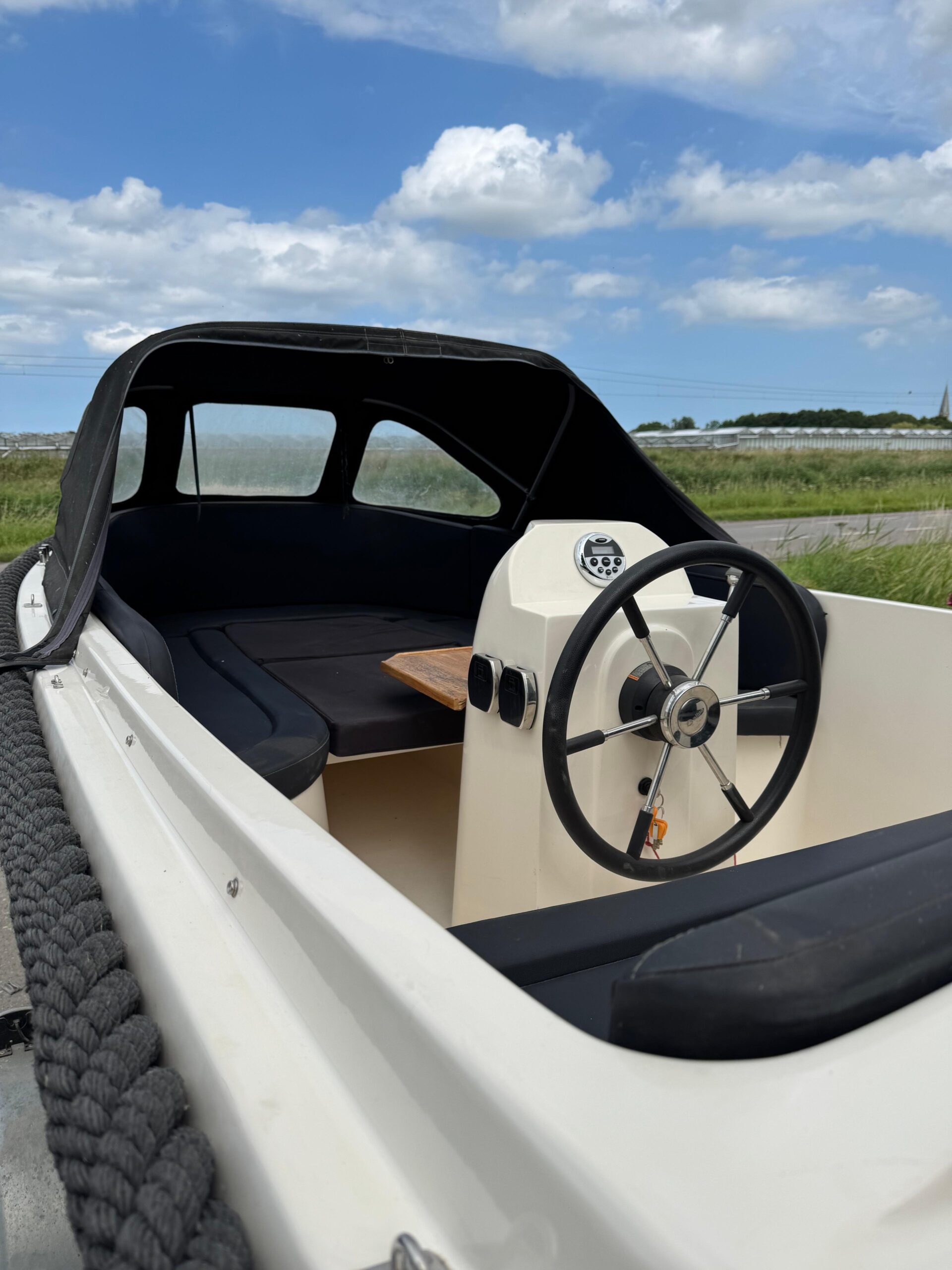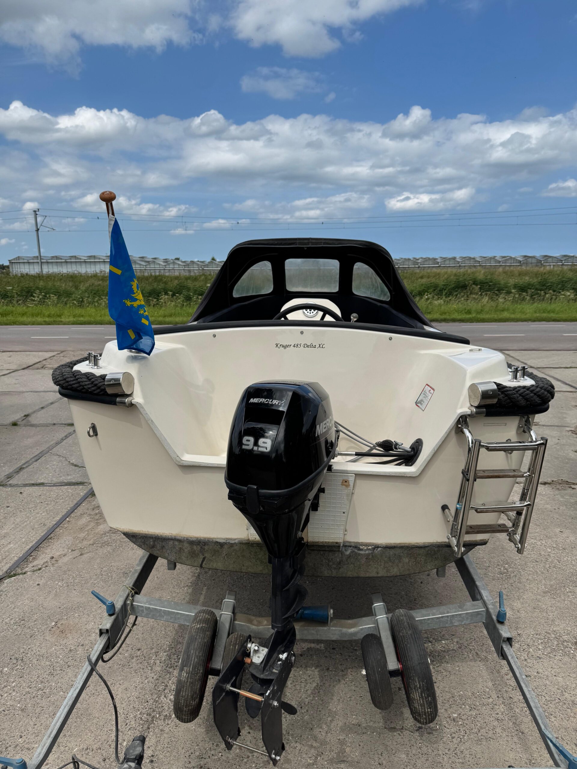 Een Kruger 485 Delta XL Tender sloep. Voorzien van alle gemakken en opties. Door de krachtige 9,9 pk Mercury motor geniet u optimaal van een vaartocht. Volledig onderhouden en helemaal compleet